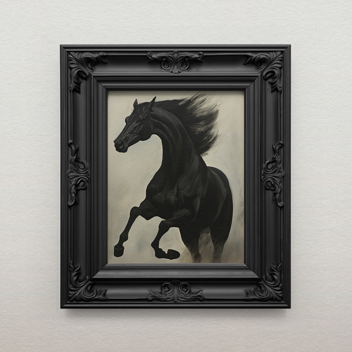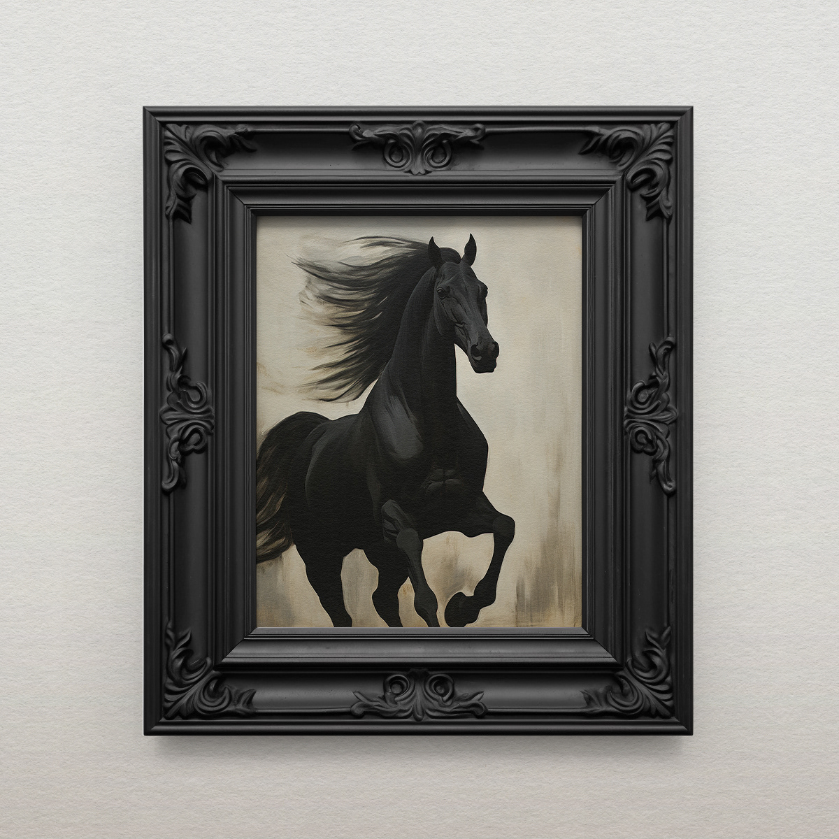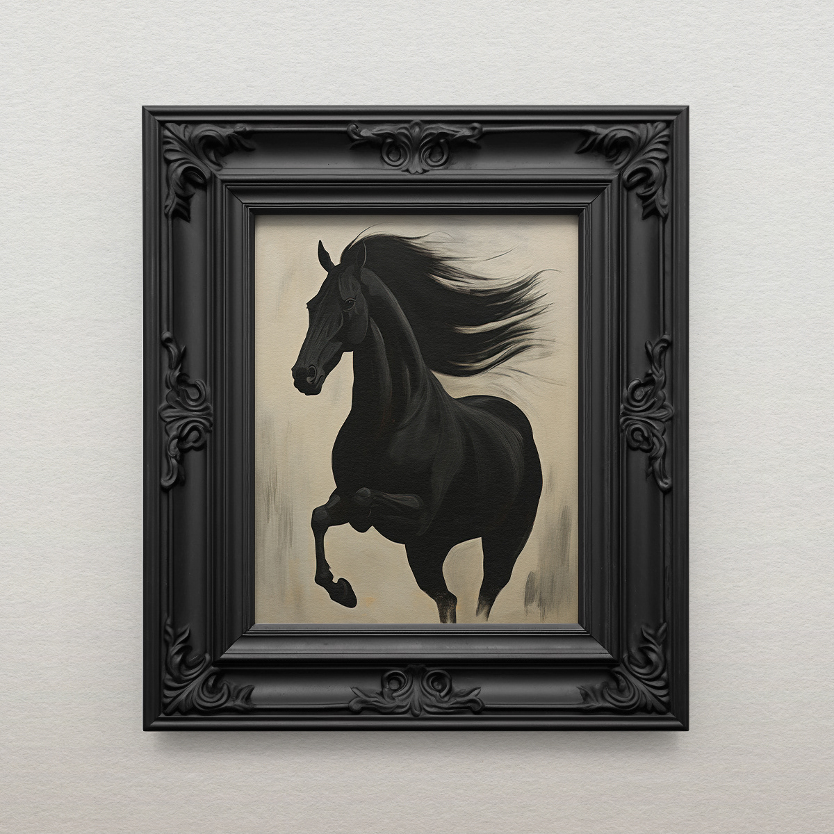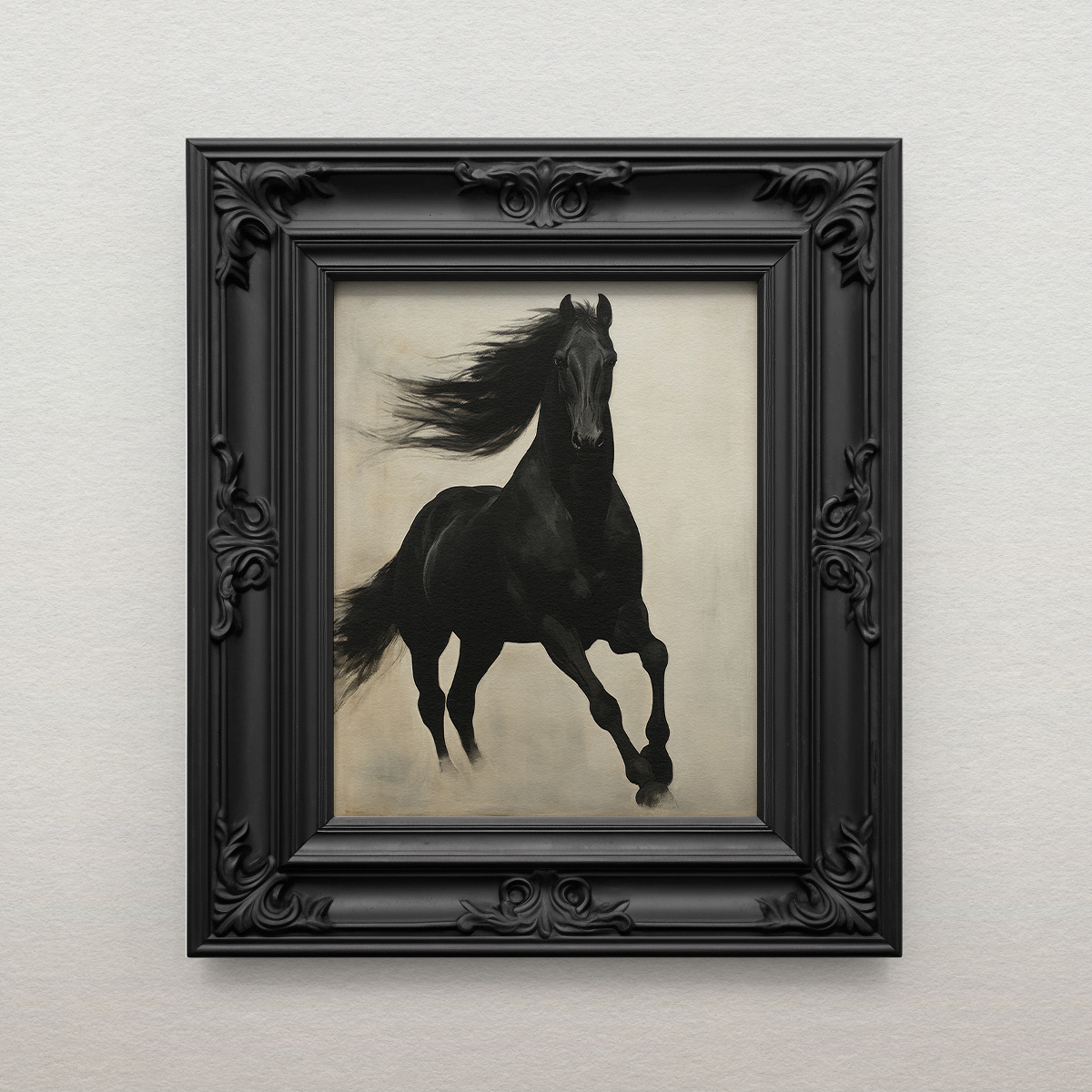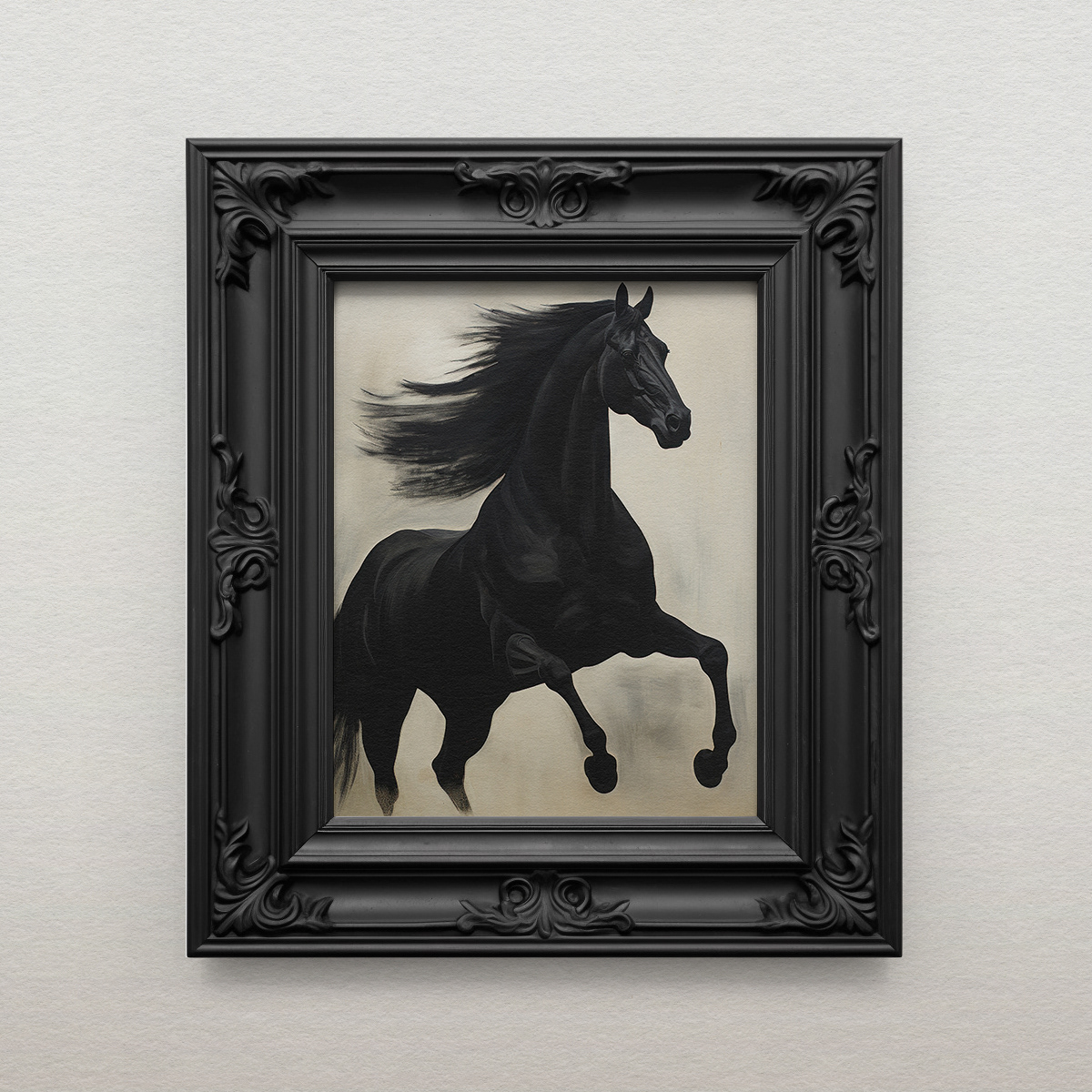 Encapsulates the enduring charm and power of black horses, offering a glimpse into their grace and enigmatic allure